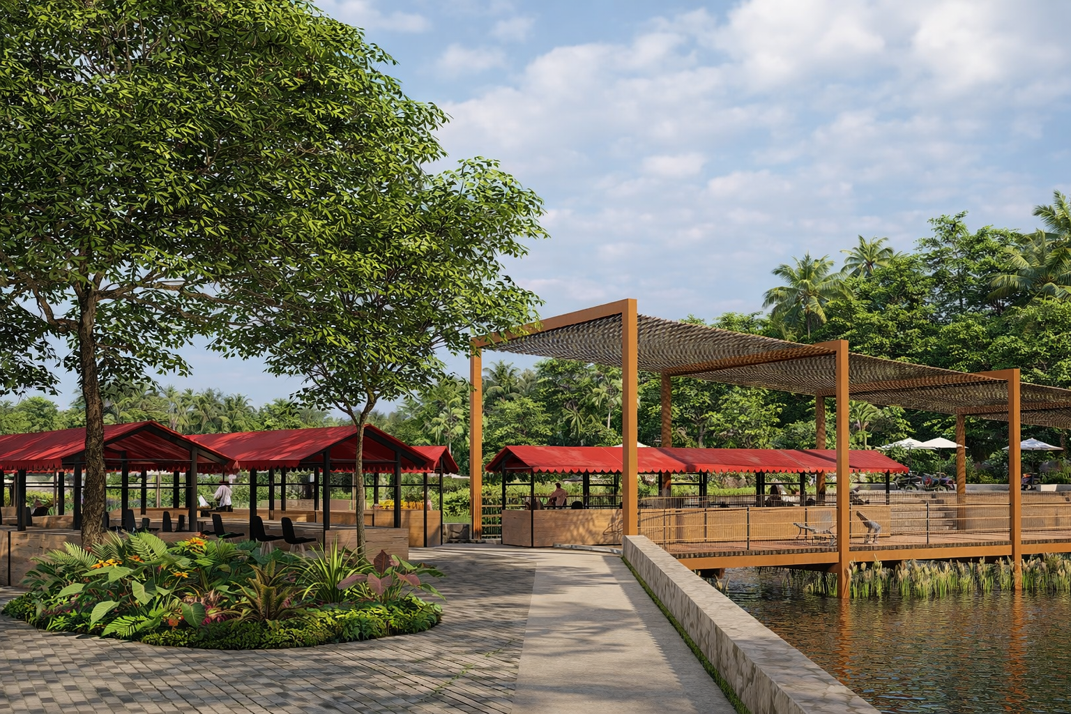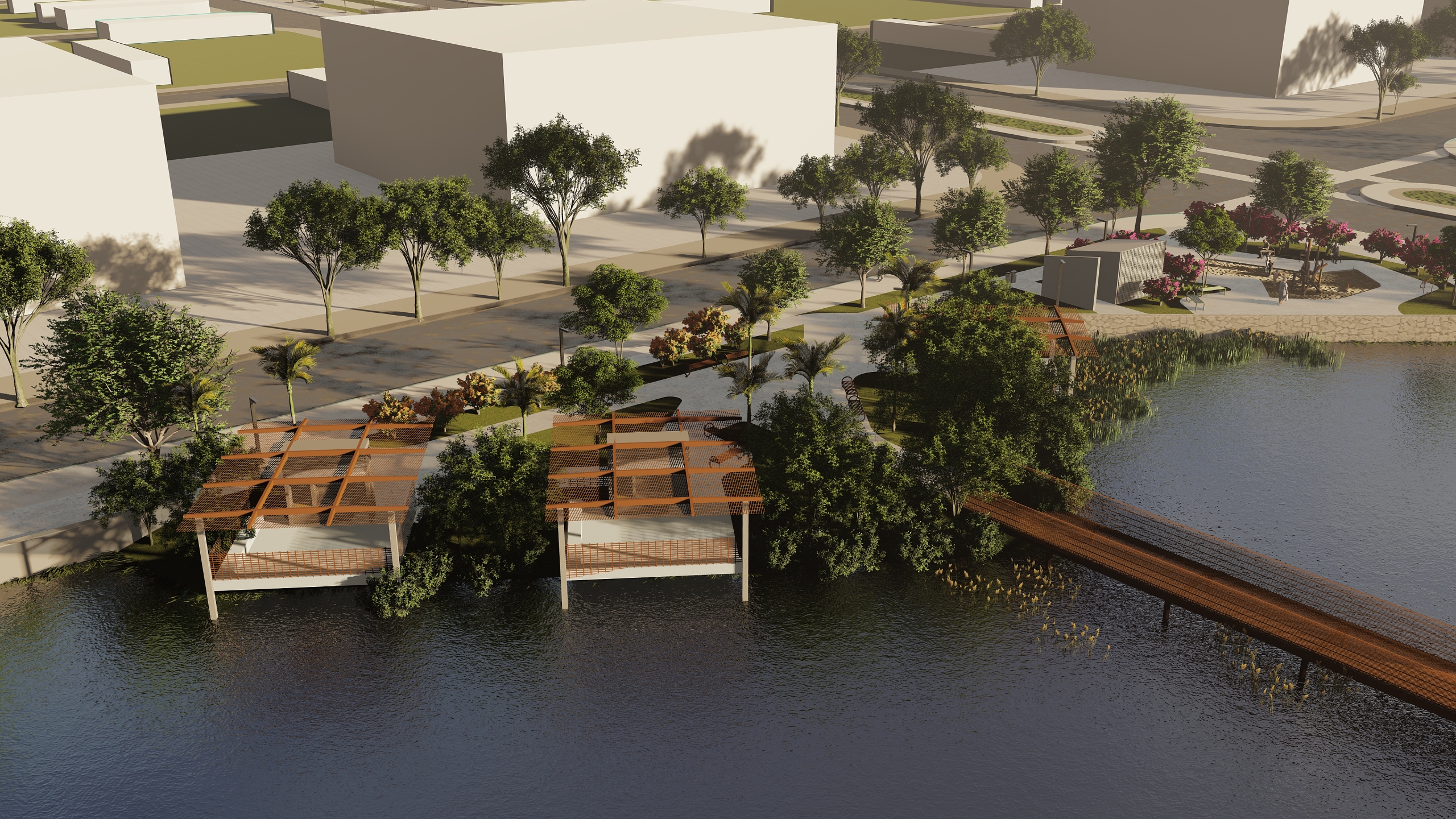 A Plantar articula visão territorial e cuidado com o detalhe, integrando infraestrutura, meio ambiente e vida comunitária em uma paisagem viva e resiliente. Soluções Baseadas na Natureza estruturam o projeto: lagos de retenção funcionam como reguladores de cheias e criam paisagens ativas, conectadas por corredores ecológicos que ampliam biodiversidade e continuidade ambiental.