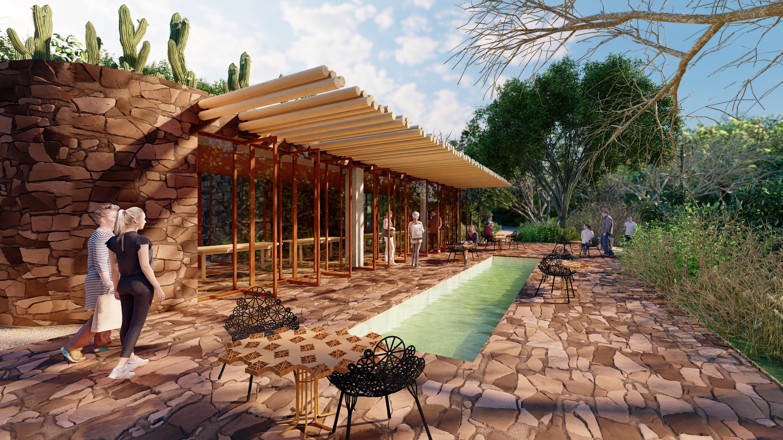 Na etapa seguinte, a PLANTAR participou do desenvolvimento dos projetos de arquitetura e espaços de visitação, elaborados sob a curadoria artística de Humberto Campana. O conjunto arquitetônico foi concebido como uma coleção de pavilhões experimentais que abrigam obras, experiências e instalações em diálogo direto com o ambiente natural.