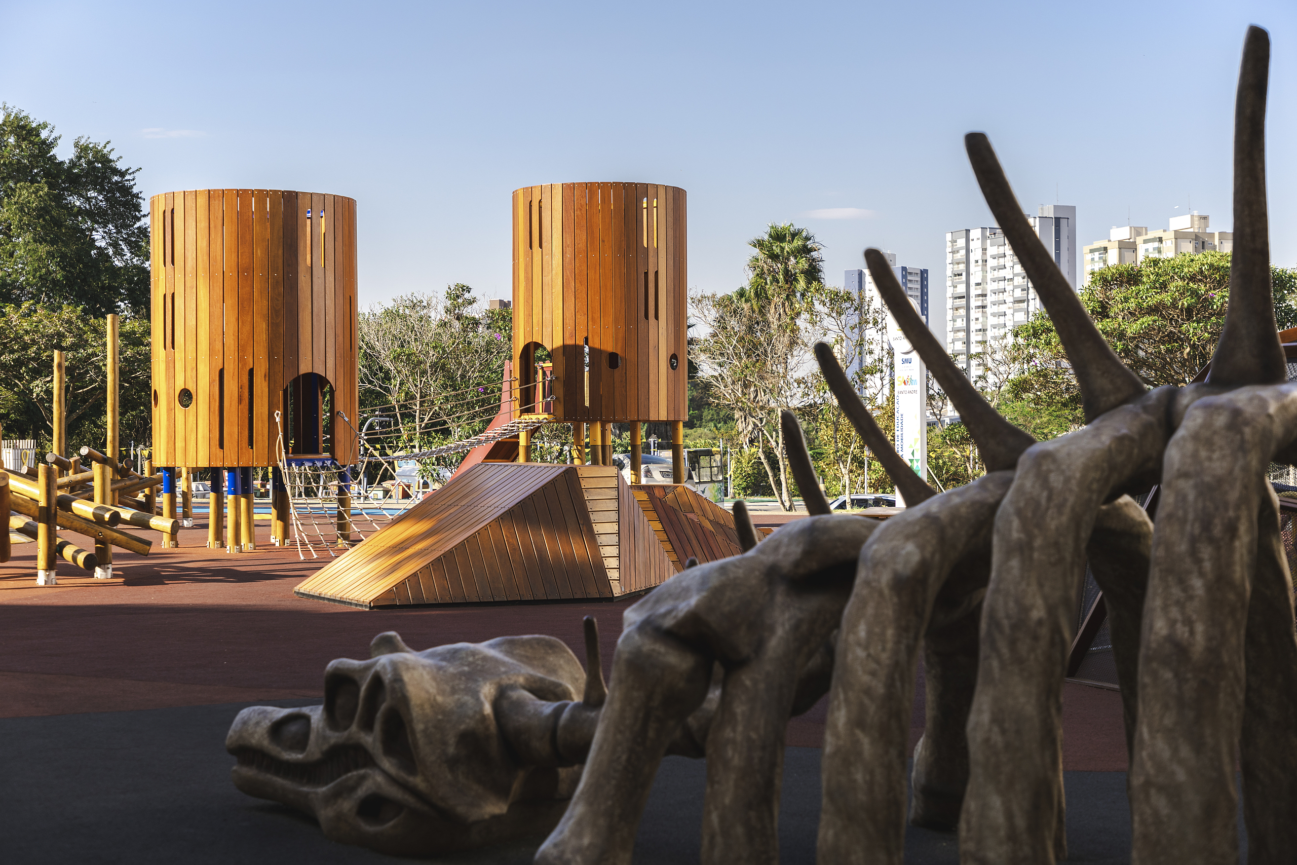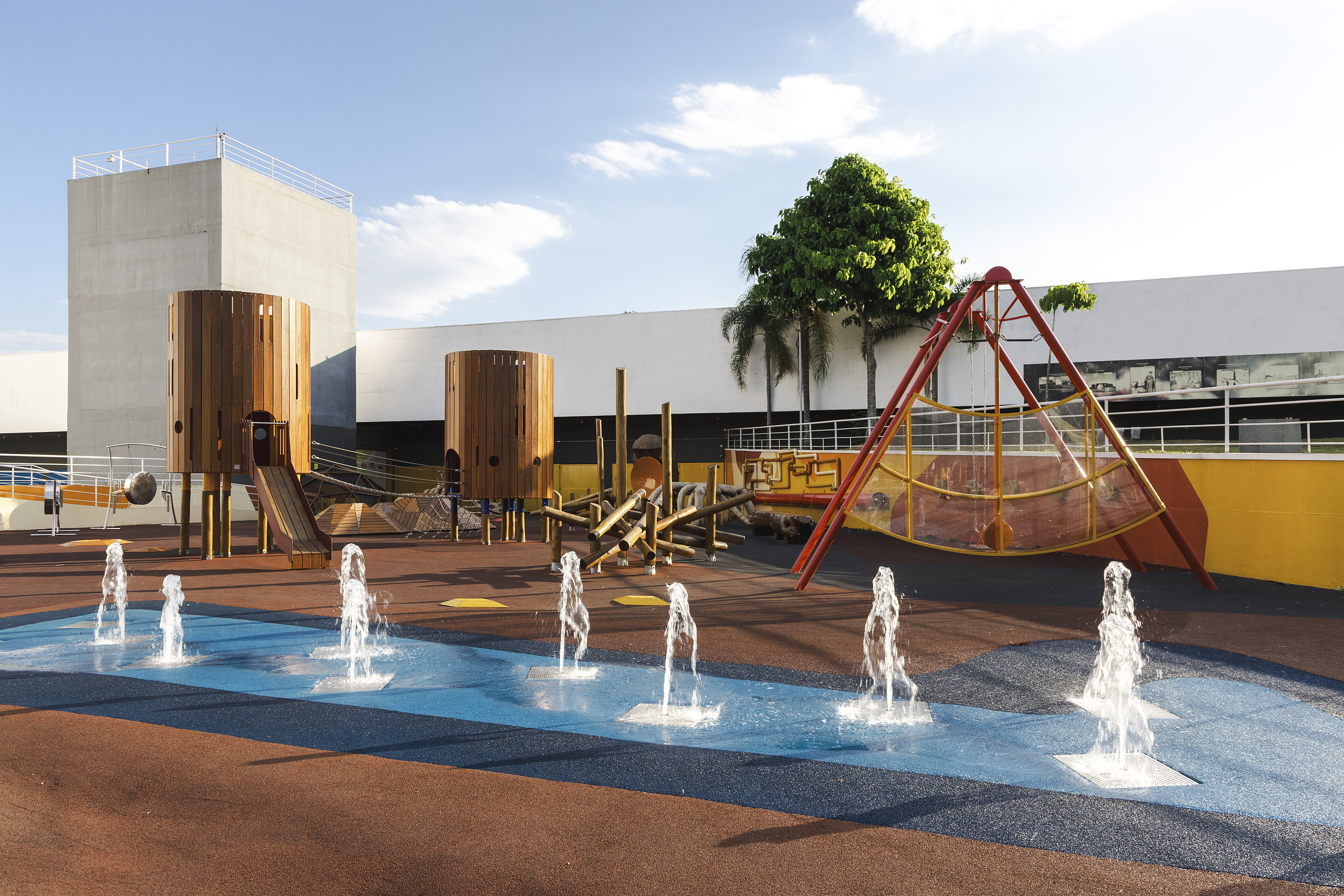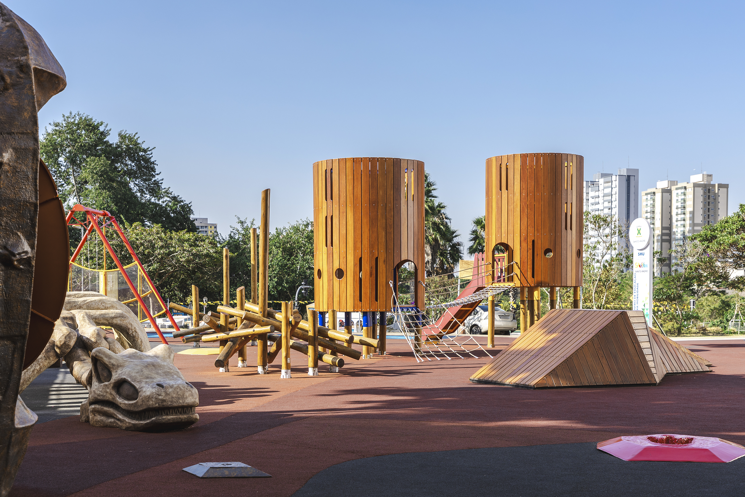 Sabina Parque do Conhecimento é um espaço projetado para promover o encontro entre aprender, descobrir e interagir com o conhecimento científico e cultural por meio do jogo e da experiência sensorial. Inserido no contexto da Sabina – Escola Parque do Conhecimento, o projeto de mais de 1.000 m² organiza uma sequência de espaços lúdicos-pedagógicos que transformam a brincadeira em uma vivência educativa contínua, fortalecendo a ideia de que jogar também é aprender e explorar. O parque se estrutura como um território de experiências sequenciadas — explorar, tocar, observar, experimentar e compreender — onde cada elemento é concebido a partir de princípios operacionais e pedagógicos que articulam conteúdos de ciência, história natural e fenômenos físicos com ações corporais e sociais. A proposta não trata o playground como um adereço isolado, mas como um ambiente integrado de aprendizagem, capaz de estimular o desenvolvimento cognitivo, motor e social de diferentes faixas etárias.